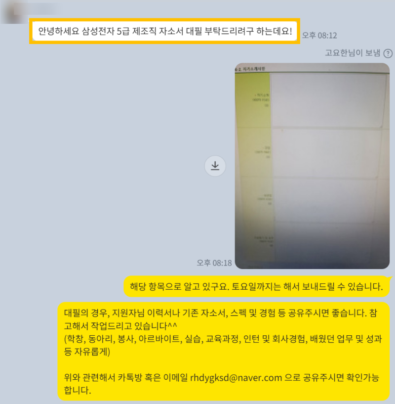 ✨ 모든 기업 자소서 첨삭, 작성 대행, 대필 가능합니다!