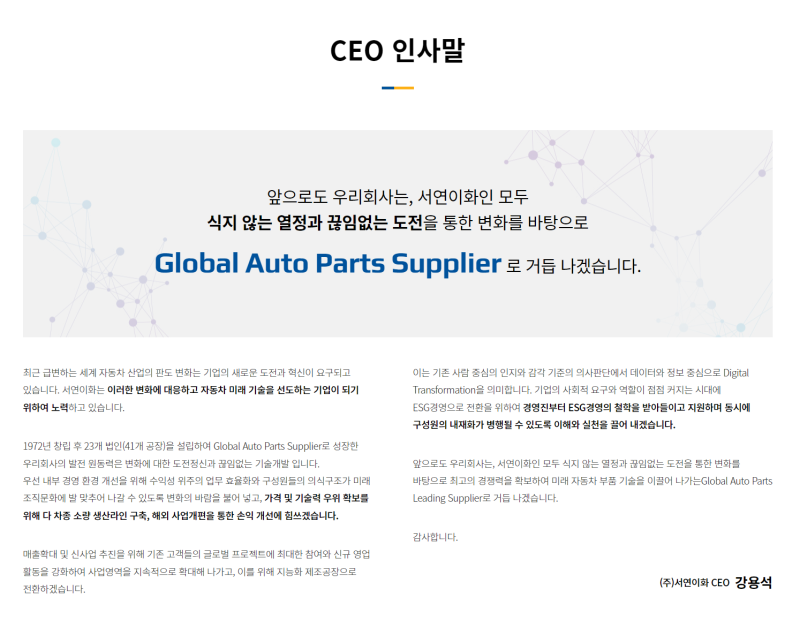 서연이화 합격을 위해서는 기업 분석이 필수입니다. 다음은 서연이화의 핵심 정보입니다.
