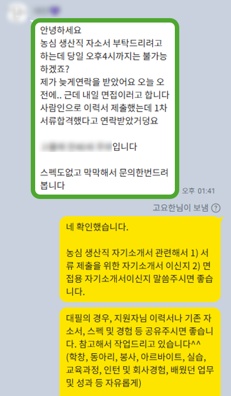 농심 생산직 자소서 첨삭! 합격자소서 비법