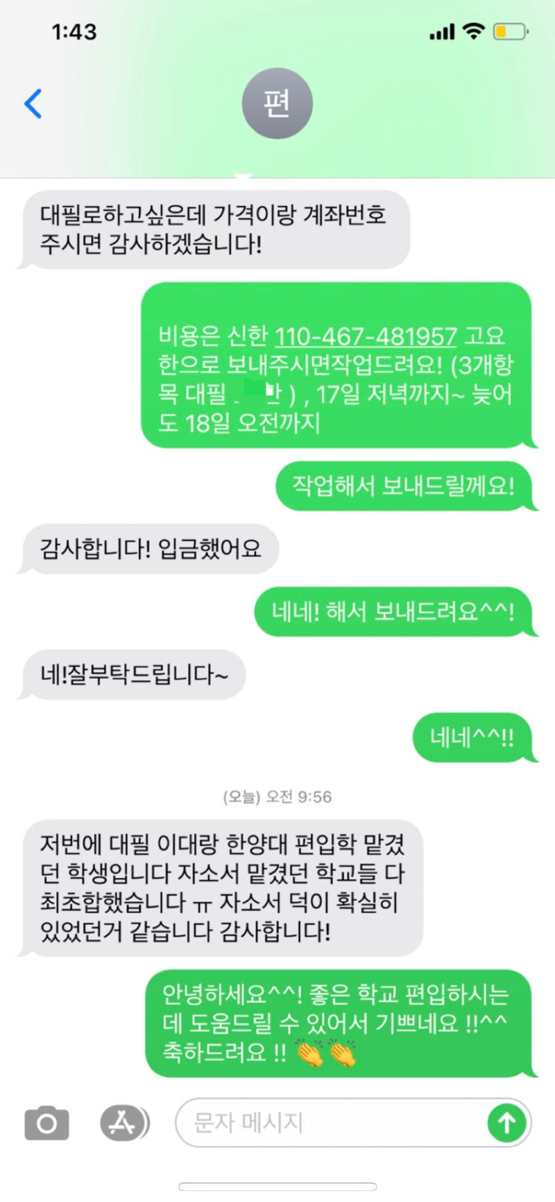 급한 자소서 제출 일정으로 먼저 문의 드렸는데 친절히 상담해 주시고 결과물도 정말 만족했습니다.!!