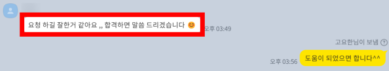 수정부분 바로바로 해주시고 원하는 결과물을 만들어 주셨습니다. 잘 이용하여 원하는 기업에 꼭 붙겠습니다!! 감사합니다^^*